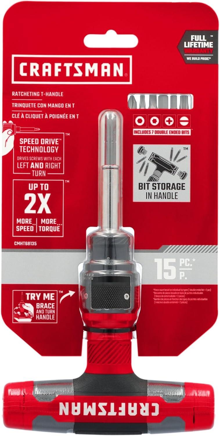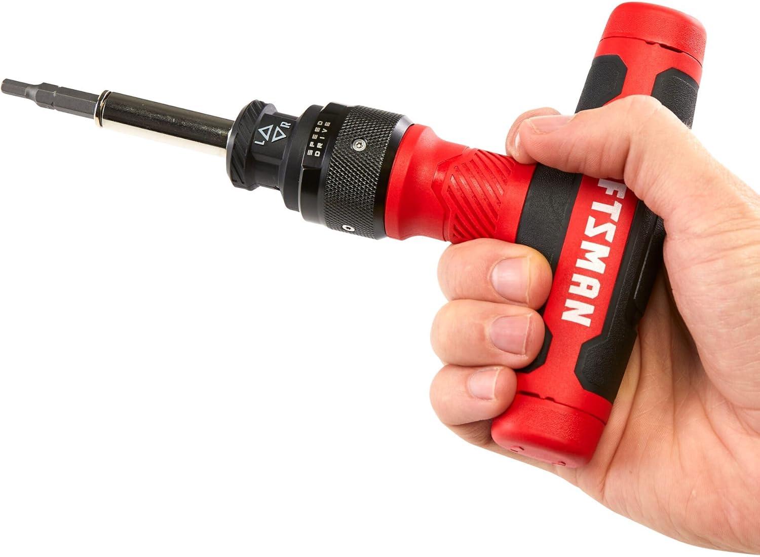 Craftsman 13 piece SpeedDrive Ratcheting technology offers dual direction ratcheting for 2x faster screws.