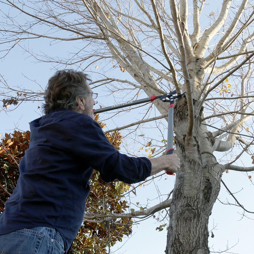 EXTENDED REACH: Up to 28-in. cutting reach for reaching taller limbs and branches