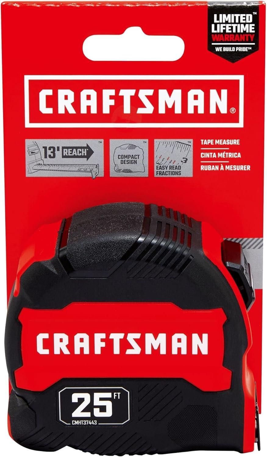 CRAFTSMAN 25-Ft Tape Measure with Fraction Marketing, Retractable, Manual-Locking Blade (CMHT37443S)(7.6 m)