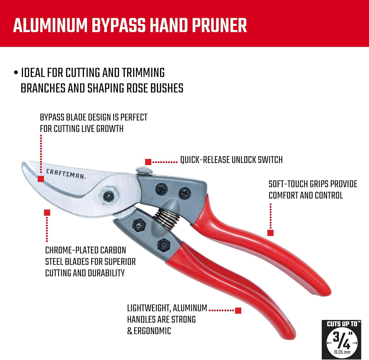 The Aluminum Handle Bypass Pruner is perfect for clean cuts to fresh, living growth. Its chrome-plated, carbon steel blades and ergonomic, soft-gripped lightweight aluminum handles provide strength along with comfort and control.