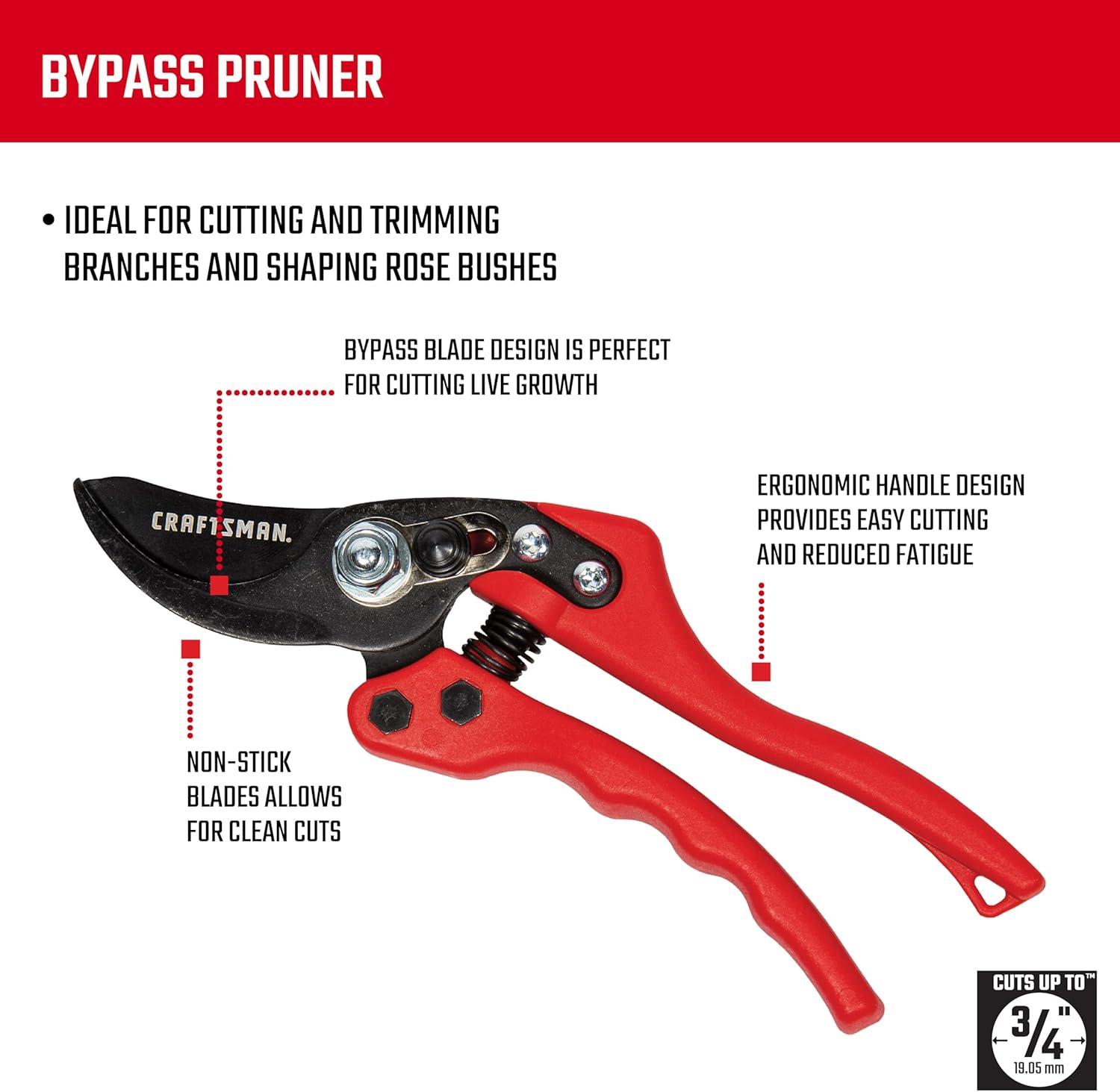 Craftsman 3/4-in. Manual Bypass Pruner for Cutting, Trimming Branches, Shaping Rose Bushes
