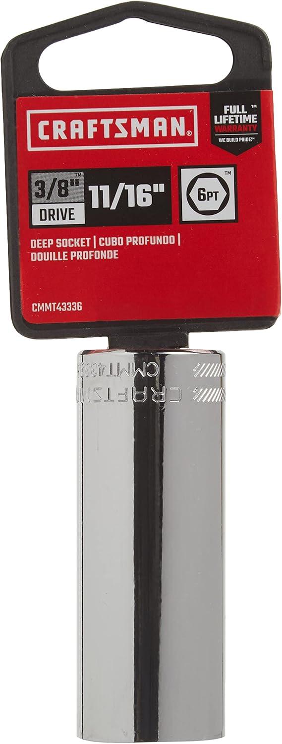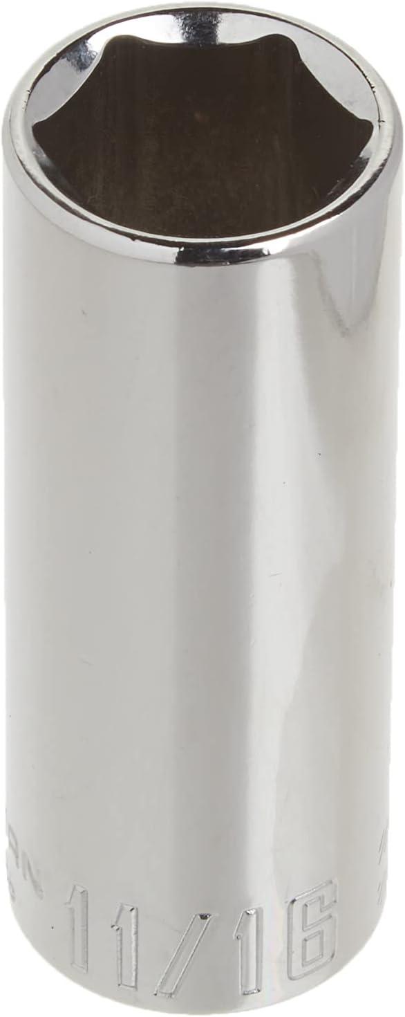 3/8-inch Drive 11/16-inch 6-Point SAE Deep Socket features a deep well construction and internal construction designed to engage with the flats of fasteners. This allows for the user to reach those hard to reach fasteners without the fear of stripping a bolt.