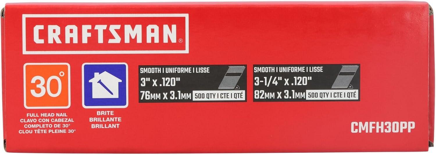 Perfect for framing, sheathing, sub-flooring, metal connectors, and bracing Paper tape collated nails Includes 500 each 3in x 0.120-in (Brite) and 3-1/4-in x 0.120-in (s mooth shank) 30-degree offset round head nail