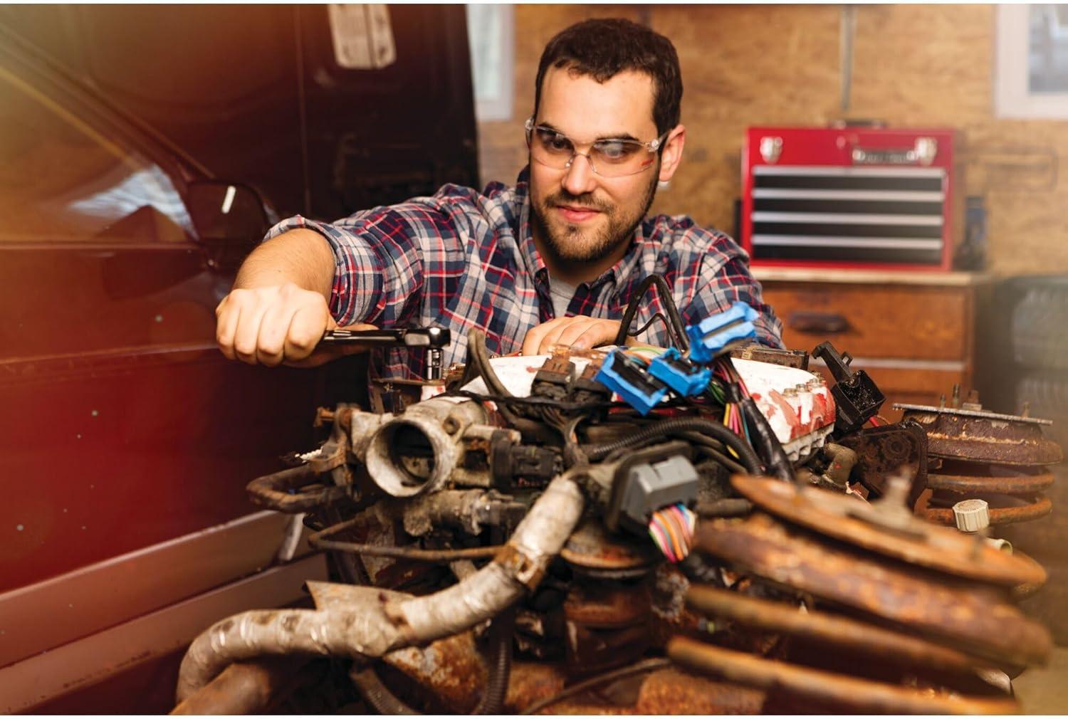 81 pc. Gunmetal Chrome Mechanics Tool Set is made for the auto-enthusiast, semi-pro, or do-it-yourselfer. This set comes with the new industry-leading, 120-Tooth ratchet that provides maximum accessibility in tight spots. With its slim head and 3-degree arc swing, you can get into narrow spaces with ease and quickly tighten or loosen a fastener. This set also comes with two extension bars, a universal joint, a spark plug socket, a bit adapter, and a wide range of shallow and deep sockets for added utility. The gunmetal chrome finish provides durable rust resistance, easy cleaning, and a professional look. All of these components are packed in a compact mobile case perfect for storage in a toolbox, garage, a vehicle or proudly displayed on your workbench. The case has durable metal clips and metal removable hinges for splitting the case into two for storage or ready availability. The case also has exterior grooves for stacking with same size cases. Take on your next project with our Gunmetal Chrome 81 pc. tool set.