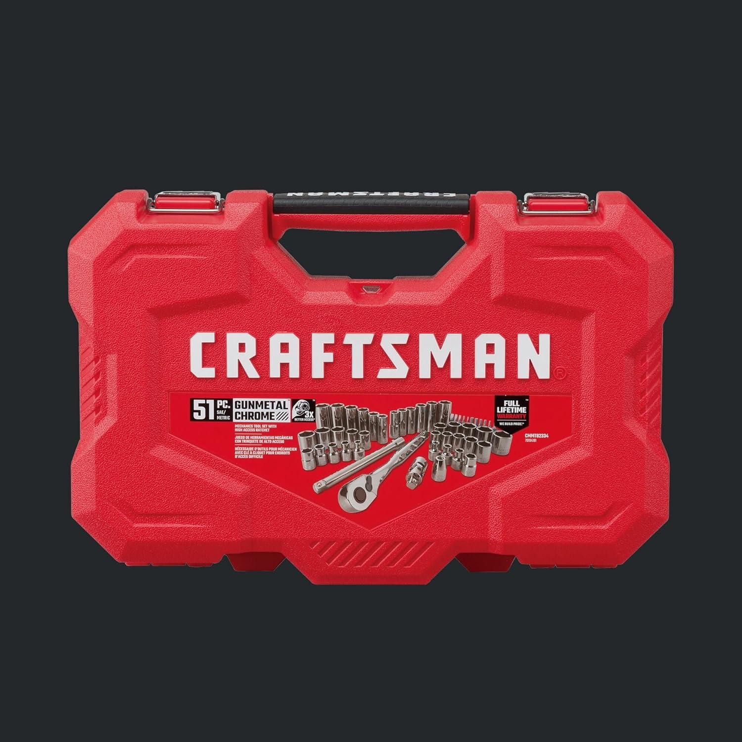 Craftsman Mechanics Tool Set, 1/4″ & 3/8″ Drive, SAE/Metric, 81 Piece (CMMT82335L)(51 Piece Set)