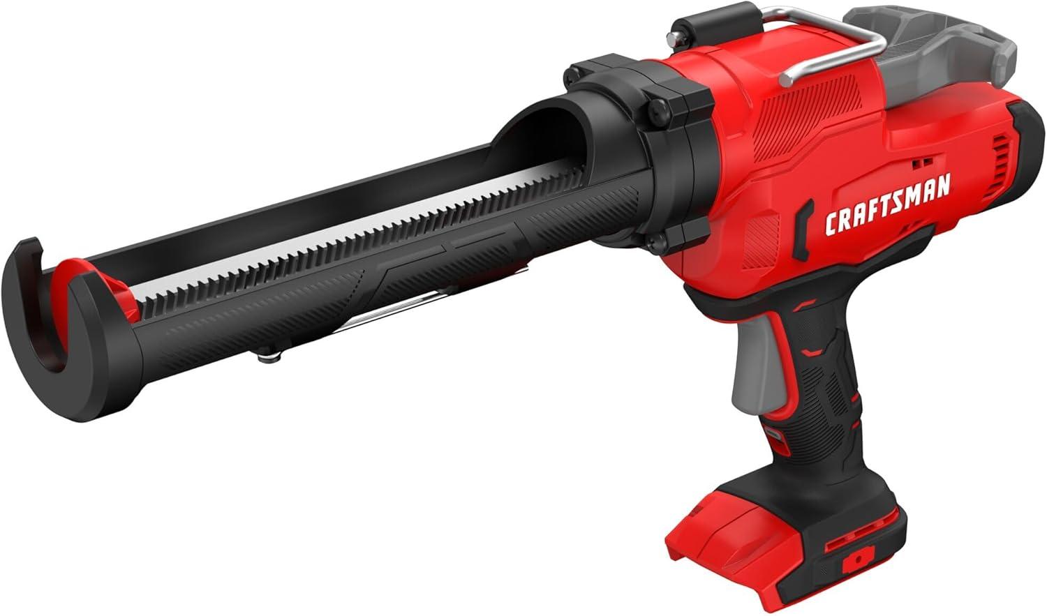 The CRAFTSMAN V20* Caulk and Adhesive Gun is ideal for a wide variety of sealing and gluing applications. This tool provides 550 lbs. of dispensing force, allowing easy dispensing of any number of sealants, caulks and adhesives. The variable speed trigger offers greater control over dispensing speed and the anti-drip feature helps ensure a clean end point. The tool comes equipped with a hang hook for easy storage as well as a puncture tool for quick set-up. Expand your CRAFTSMAN V20* system with the V20* Caulk and Adhesive Gun. Battery and charger sold separately.