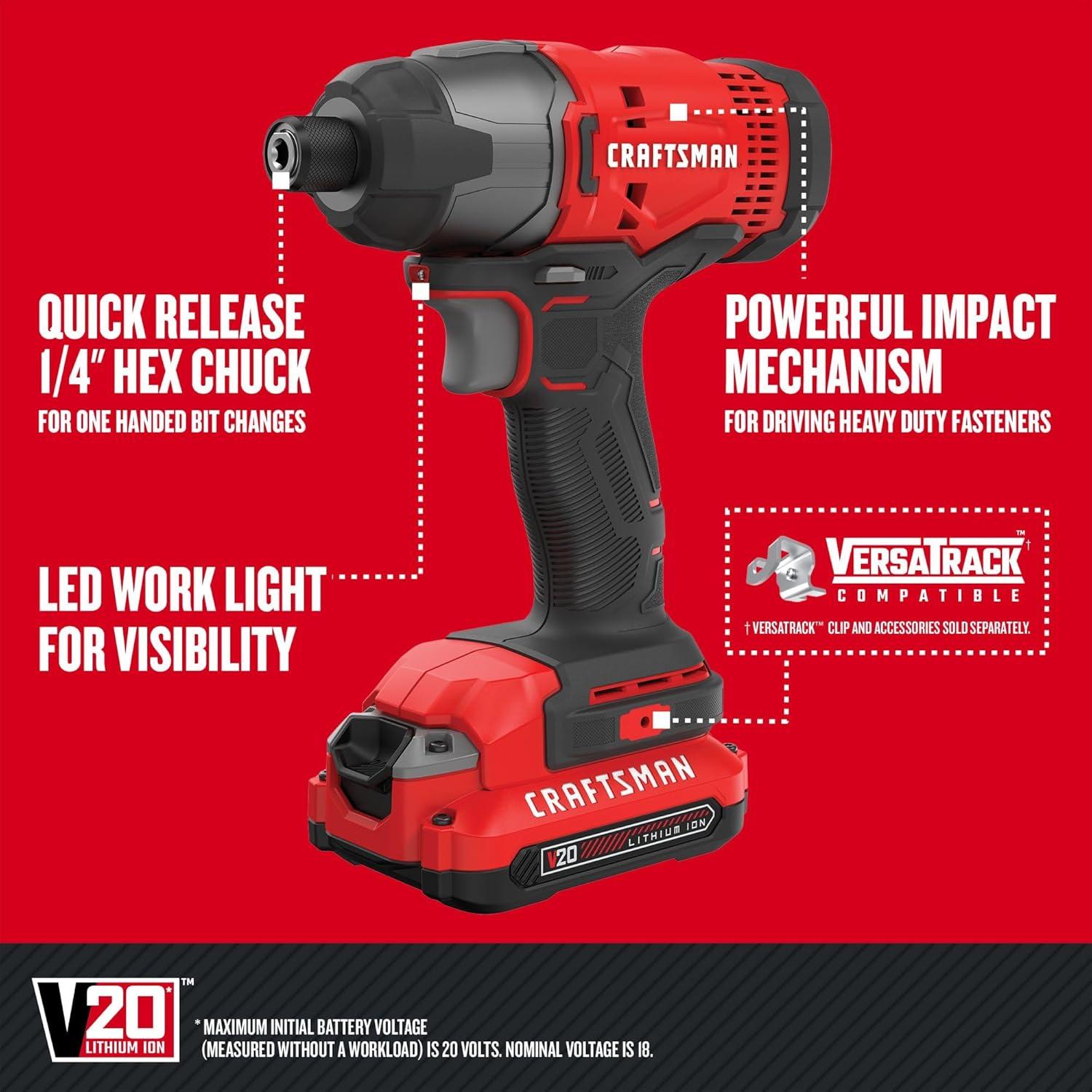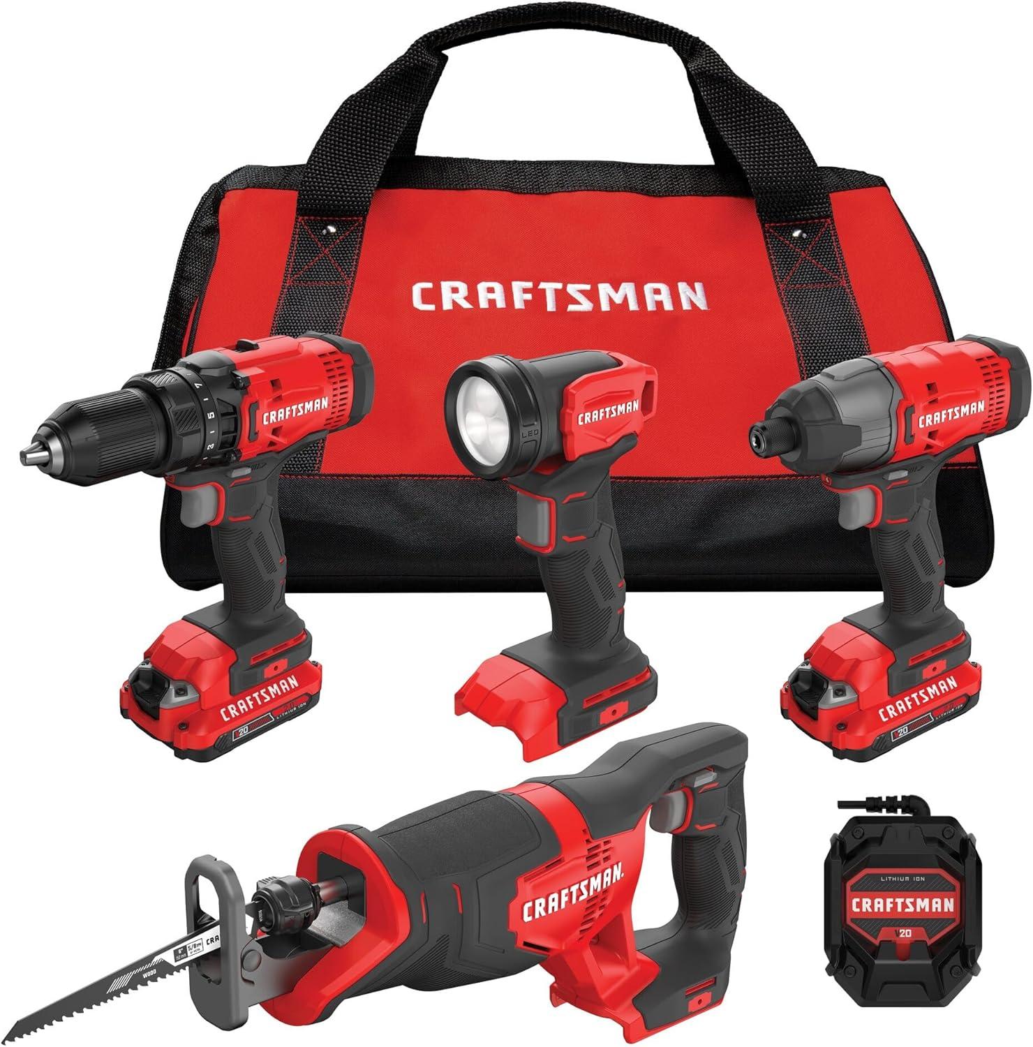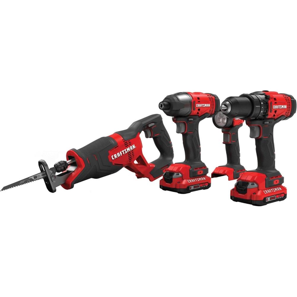 V20* Cordless 4 Tool Combo Kit (2 Batteries) provides the ability to complete a variety of general construction applications. The combo kit provides a solution for all of your drilling, fastening and cutting needs. The 4-Tool Combo Kit comes with a soft storage bag for transporting or storing the products, batteries, charger and accessories