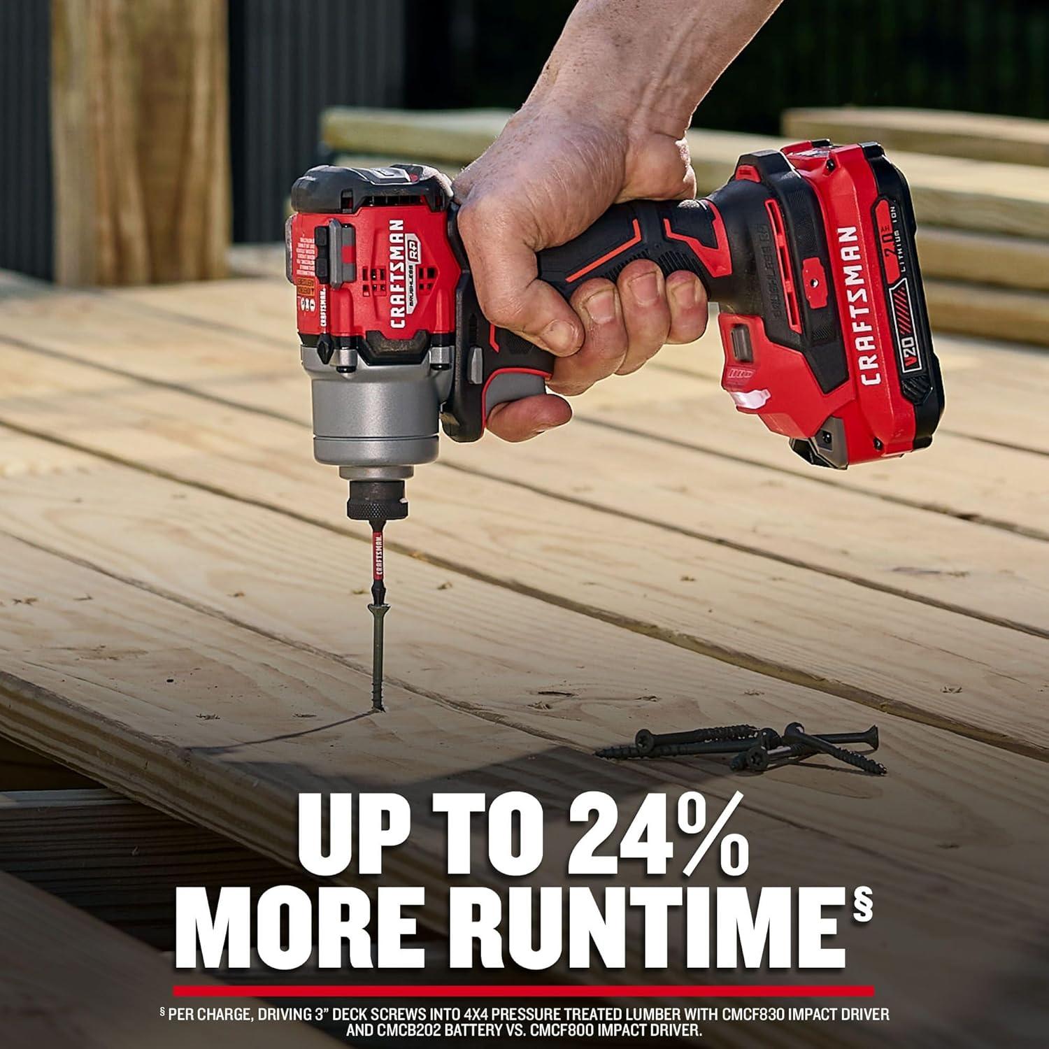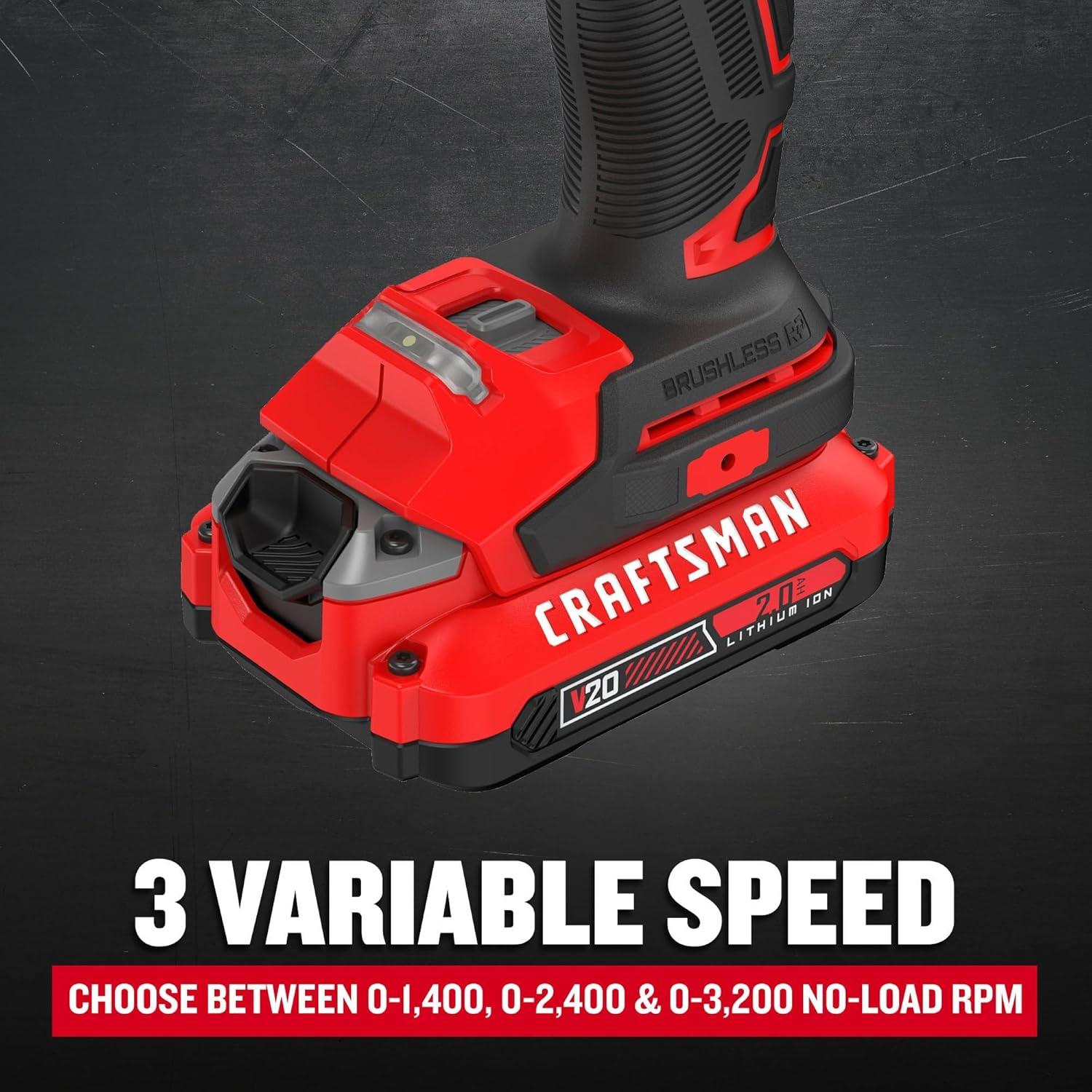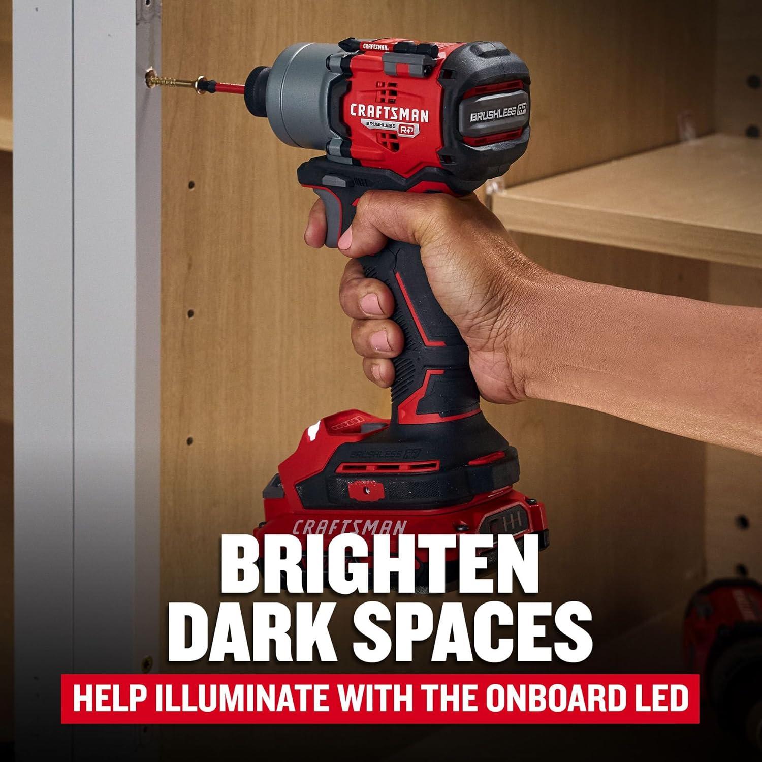 Step up to More Runtime and Better Performance with the V20* BRUSHLESS RP Cordless 1/4-in. Impact Driver, featuring a brushless motor which provides up to 23% more max torque. Experience efficiency and power with a brushless motor that is capable of drilling up to 150 fasteners per charge**. The 3 speed gear box with variable speed trigger allows for added control through various applications and has a max speed of up to 3,200 no-load RPM. Focus on the task at hand and take pride in your work with the convenience of this tool's onboard LED, bit holders, and belt hook. With (2) included 2 Ah batteries and (1) charger, this kit is ready for your fastening needs.